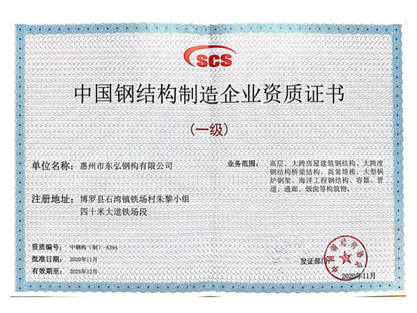 中国钢结构制造企业资质证书
