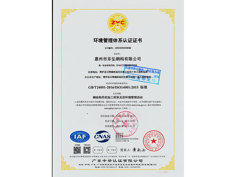 环境管理体系认证证书